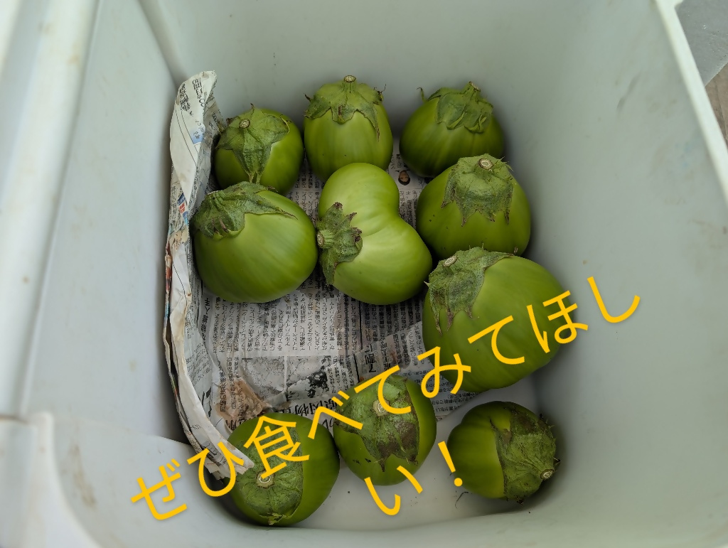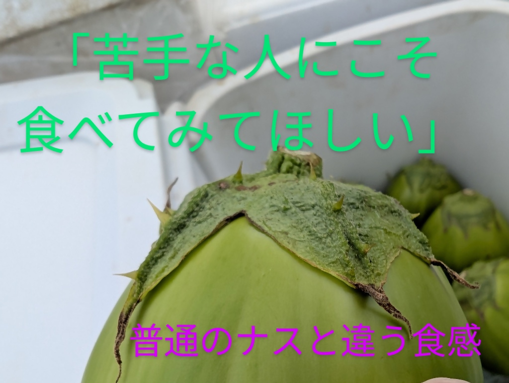 ですが、ナスといってもたくさんの種類があります。だから、そんな人にこそぜひ緑ナスを食べてみてほしい!!